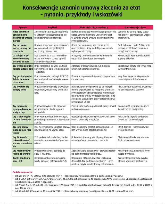 Niezbędnik: Konsekwencje uznania umowy zlecenia za etat – pytania, przykłady i wskazówki